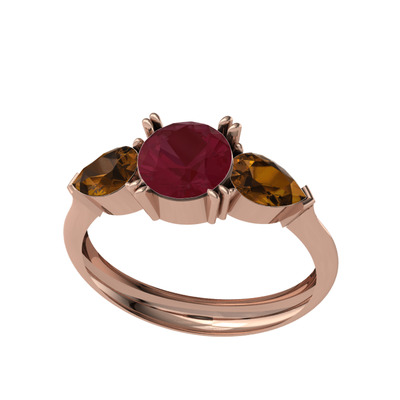 Kök yakut ve dumanlı kuvars 18 ayar rose altın yüzük