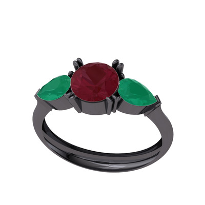 Kök yakut ve kök zümrüt 925 ayar siyah rodyum kaplama gümüş yüzük