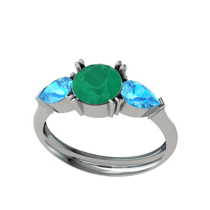 Kök zümrüt ve akuamarin 8 ayar beyaz altın yüzük