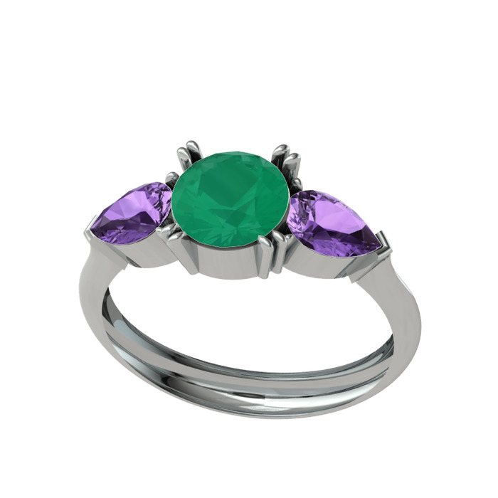 Kök zümrüt ve ametist 14 ayar beyaz altın yüzük