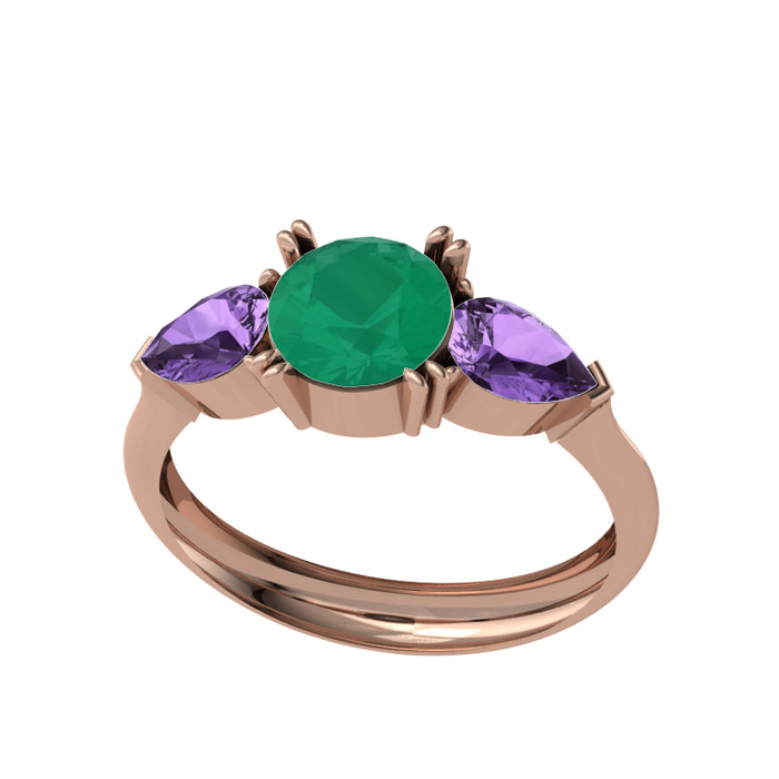 Kök zümrüt ve ametist 18 ayar rose altın yüzük
