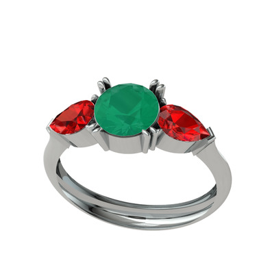 Kök zümrüt ve garnet 8 ayar beyaz altın yüzük