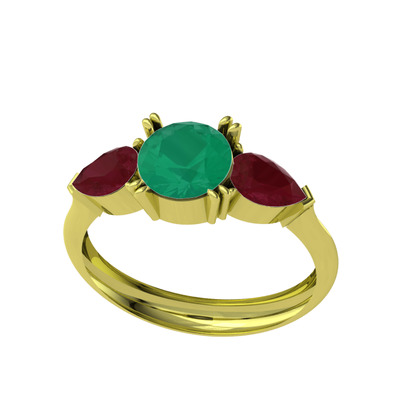 Kök zümrüt ve kök yakut 8 ayar altın yüzük