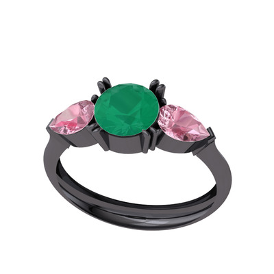 Kök zümrüt ve pembe kuvars 925 ayar siyah rodyum kaplama gümüş yüzük