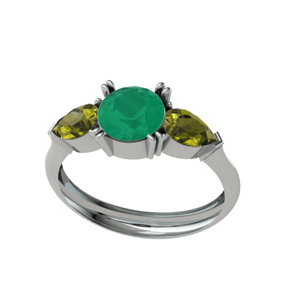 Kök zümrüt ve peridot 925 ayar gümüş yüzük