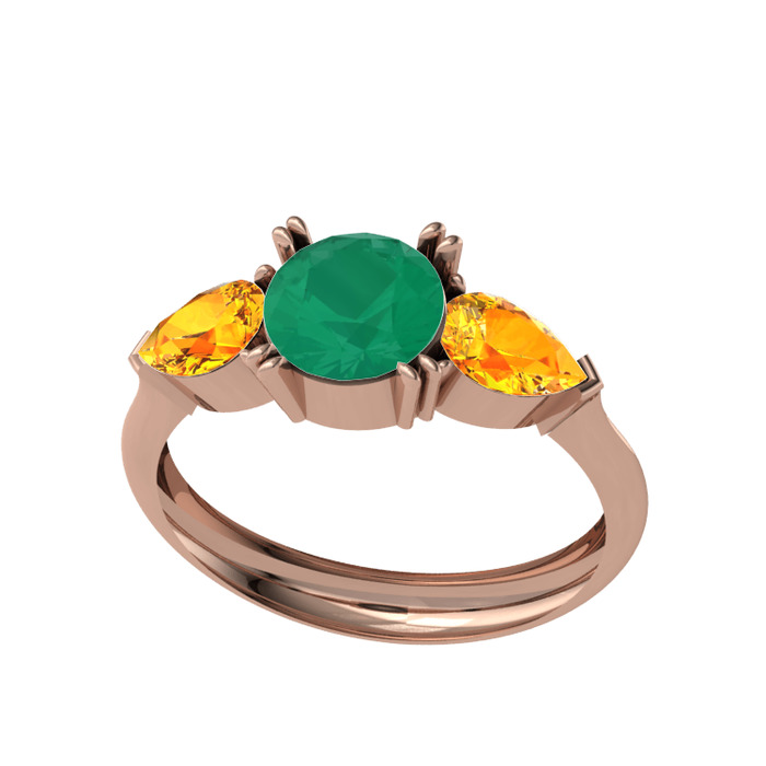 Kök zümrüt ve sitrin 8 ayar rose altın yüzük