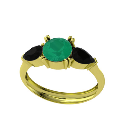 Kök zümrüt ve siyah zirkon 18 ayar altın yüzük