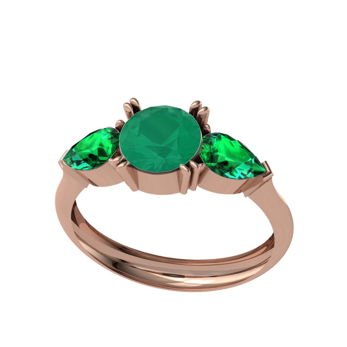 Kök zümrüt ve yeşil kuvars 925 ayar rose altın kaplama gümüş yüzük