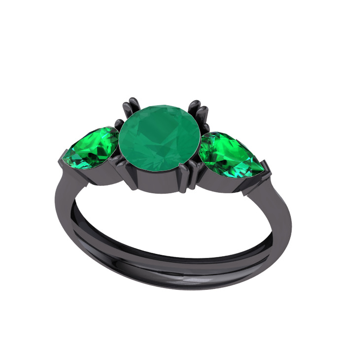 Kök zümrüt ve yeşil kuvars 925 ayar siyah rodyum kaplama gümüş yüzük