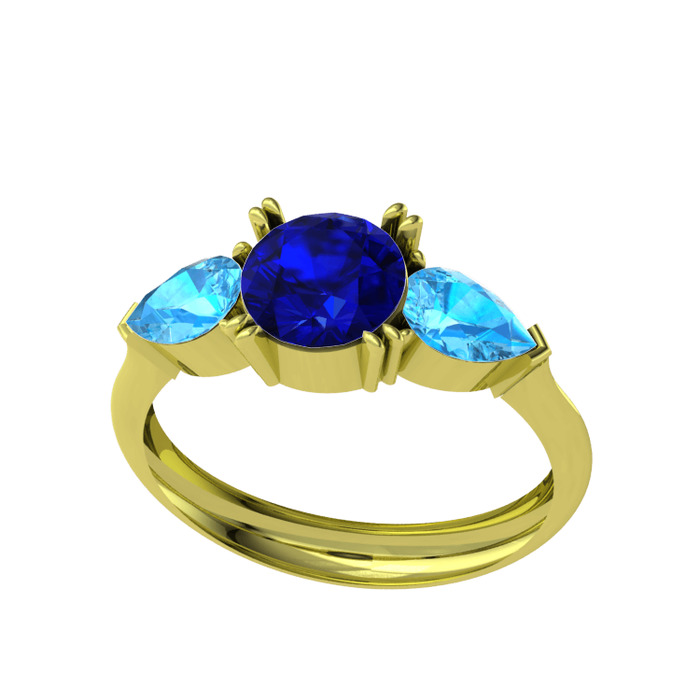 Lab safir ve akuamarin 8 ayar altın yüzük