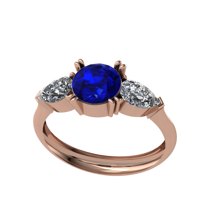 Lab safir ve beyaz zirkon 18 ayar rose altın yüzük