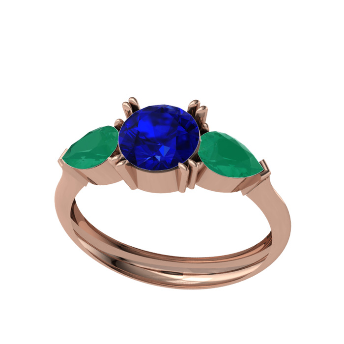 Lab safir ve kök zümrüt 14 ayar rose altın yüzük