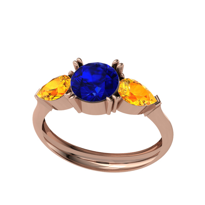Lab safir ve sitrin 8 ayar rose altın yüzük
