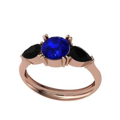 Lab safir ve siyah zirkon 8 ayar rose altın yüzük