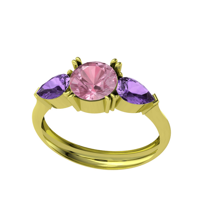 Pembe kuvars ve ametist 925 ayar altın kaplama gümüş yüzük