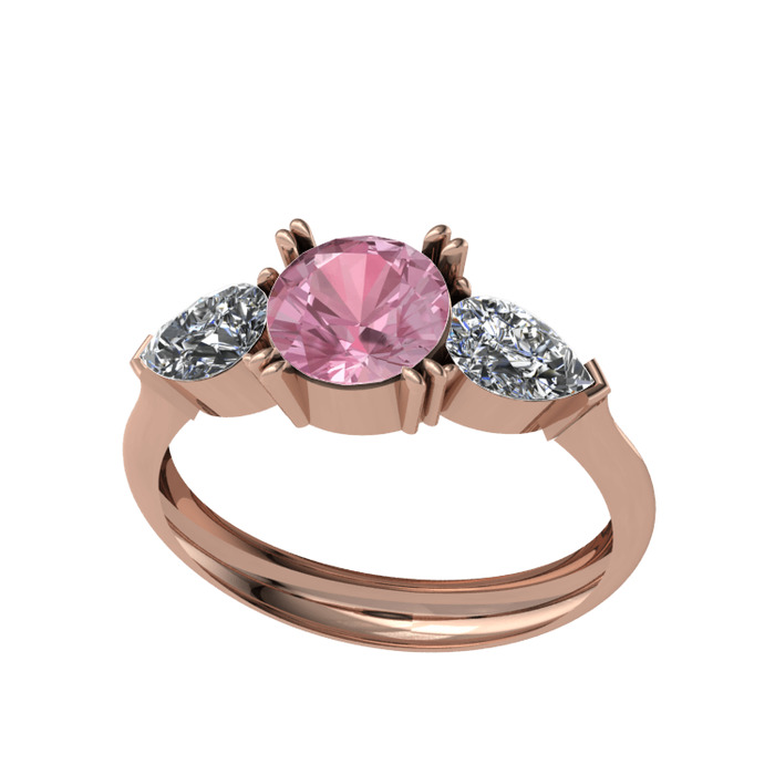 Pembe kuvars ve beyaz zirkon 14 ayar rose altın yüzük
