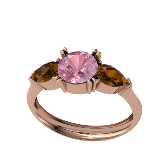 Pembe kuvars ve dumanlı kuvars 925 ayar rose altın kaplama gümüş yüzük