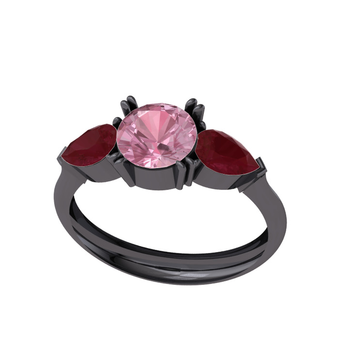 Pembe kuvars ve kök yakut 925 ayar siyah rodyum kaplama gümüş yüzük