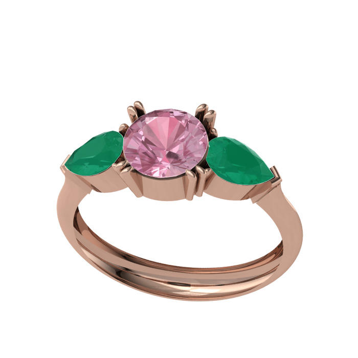 Pembe kuvars ve kök zümrüt 925 ayar rose altın kaplama gümüş yüzük