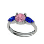 Pembe kuvars ve lab safir 14 ayar beyaz altın yüzük