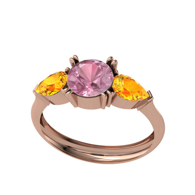 Pembe kuvars ve sitrin 8 ayar rose altın yüzük