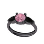 Pembe kuvars ve siyah zirkon 925 ayar siyah rodyum kaplama gümüş yüzük
