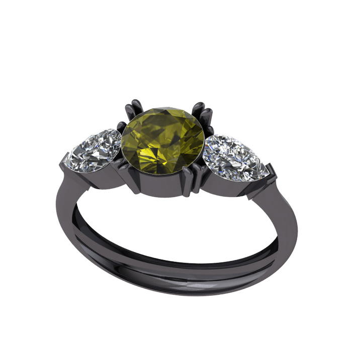 Peridot ve beyaz zirkon 925 ayar siyah rodyum kaplama gümüş yüzük