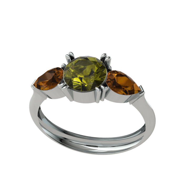 Peridot ve dumanlı kuvars 925 ayar gümüş yüzük