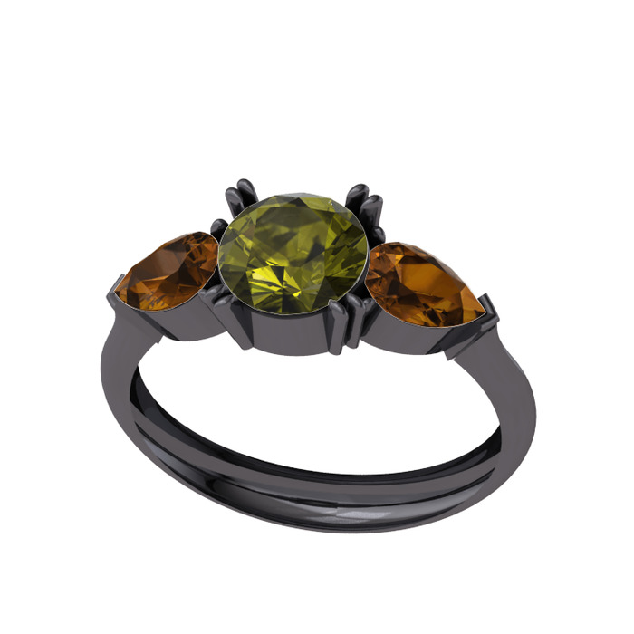 Peridot ve dumanlı kuvars 925 ayar siyah rodyum kaplama gümüş yüzük
