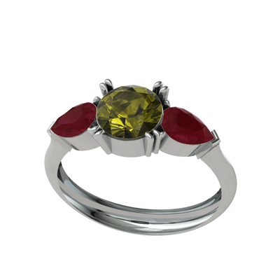 Peridot ve kök yakut 18 ayar beyaz altın yüzük