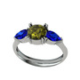 Peridot ve lab safir 18 ayar beyaz altın yüzük