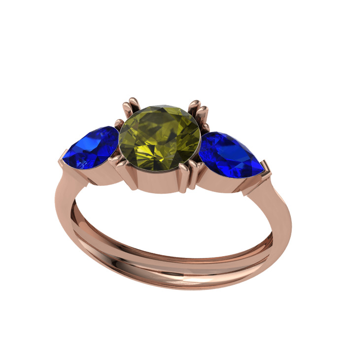 Peridot ve lab safir 925 ayar rose altın kaplama gümüş yüzük