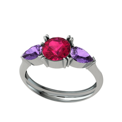 Rodolit garnet ve ametist 925 ayar gümüş yüzük