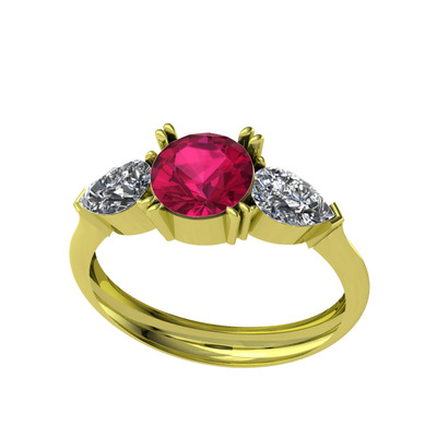 Rodolit garnet ve beyaz zirkon 14 ayar altın yüzük