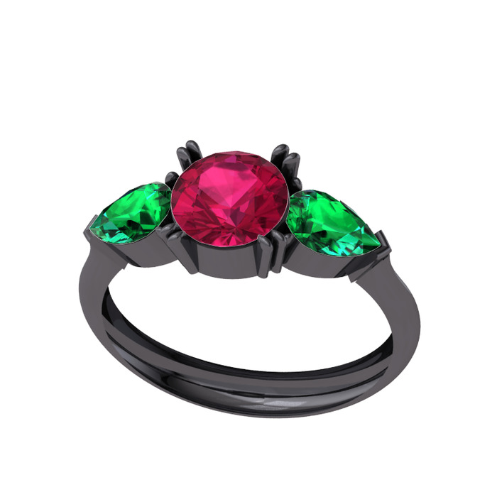 Rodolit garnet ve yeşil kuvars 925 ayar siyah rodyum kaplama gümüş yüzük