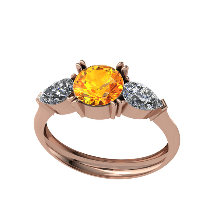 Sitrin ve beyaz zirkon 8 ayar rose altın yüzük