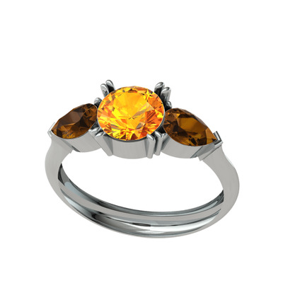 Sitrin ve dumanlı kuvars 18 ayar beyaz altın yüzük