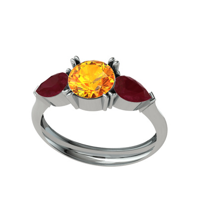 Sitrin ve kök yakut 8 ayar beyaz altın yüzük