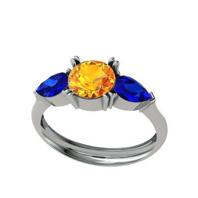 Sitrin ve lab safir 18 ayar beyaz altın yüzük