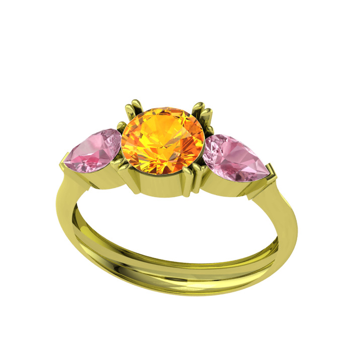 Sitrin ve pembe kuvars 8 ayar altın yüzük