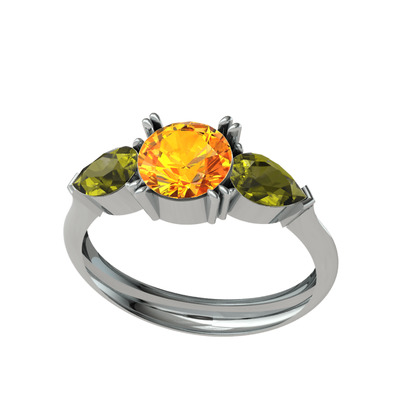 Sitrin ve peridot 14 ayar beyaz altın yüzük