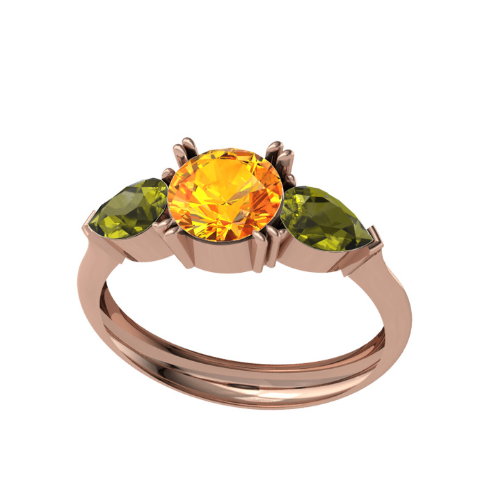 Sitrin ve peridot 8 ayar rose altın yüzük