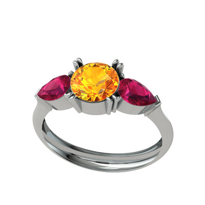 Sitrin ve rodolit garnet 925 ayar gümüş yüzük