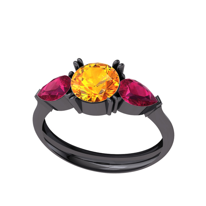 Sitrin ve rodolit garnet 925 ayar siyah rodyum kaplama gümüş yüzük