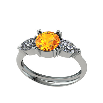 Sitrin ve swarovski 18 ayar beyaz altın yüzük