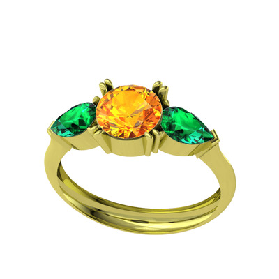 Sitrin ve yeşil kuvars 18 ayar altın yüzük