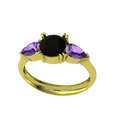 Siyah zirkon ve ametist 14 ayar altın yüzük