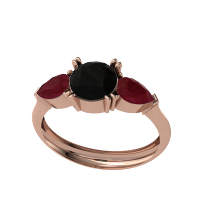 Siyah zirkon ve kök yakut 925 ayar rose altın kaplama gümüş yüzük