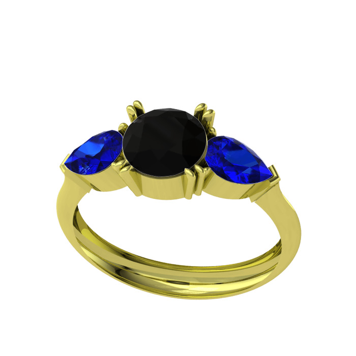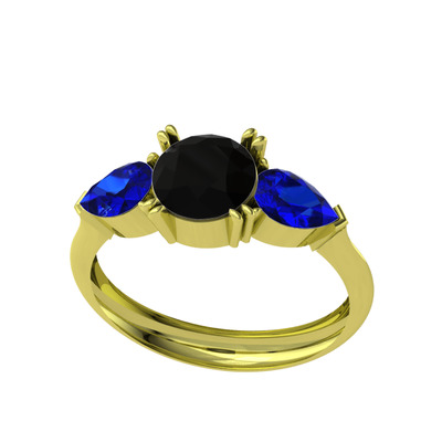 Siyah zirkon ve lab safir 18 ayar altın yüzük