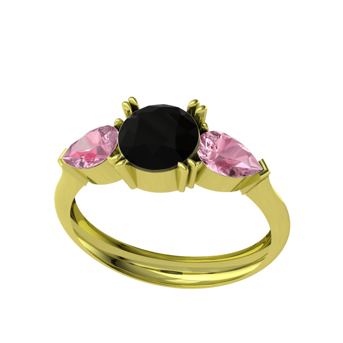 Siyah zirkon ve pembe kuvars 14 ayar altın yüzük